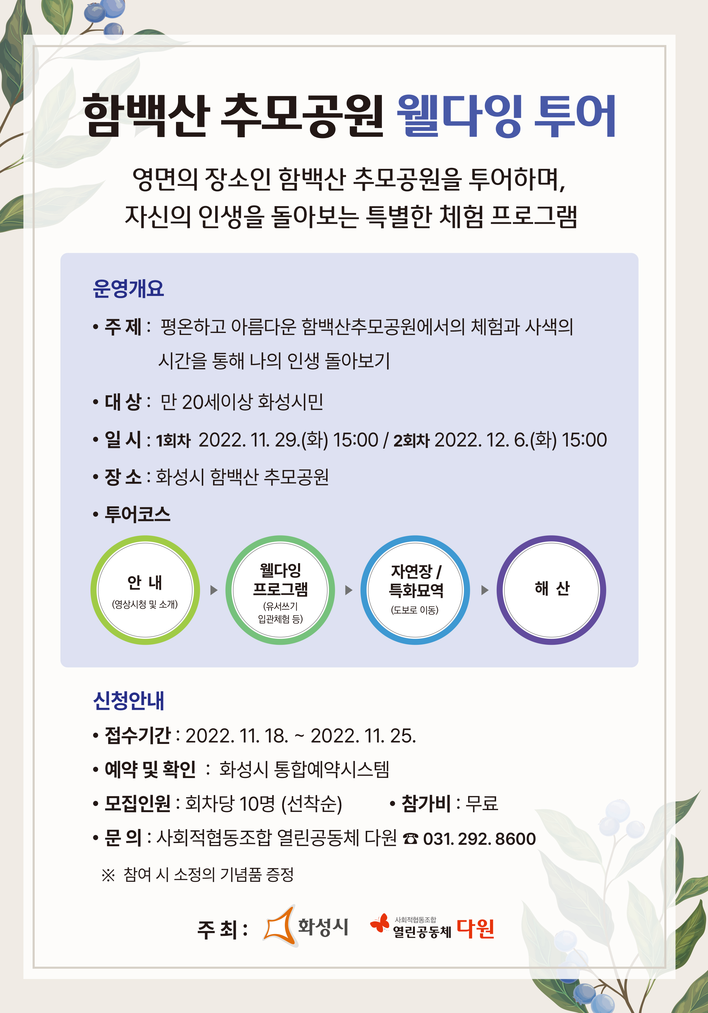 ÇÔ¹é»ê Ãß¸ð°ø¿ø À£´ÙÀ× Åõ¾î¿¡ ÃÊ´ëÇÕ´Ï´Ù. ¸¹ÀÌ Âü¿© Çϼż üÇè°ú »ç»öÀÇ ½Ã°£À» ÅëÇØ ¿ì¸®ÀÇ ÀλýÀ» µ¹¾Æº¸´Â ½Ã°£À» °¡Á® º¸¼¼¿ä~
